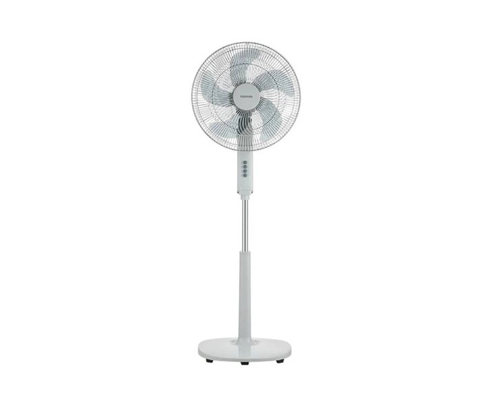 – The Toshiba 16″ Stand Fan, model F-SYA10(G)MY, is a stand fan featuring a dual-channel air design, a powerful ball-bearing motor, and five horn-like fan blades for strong, long-distance airflow.